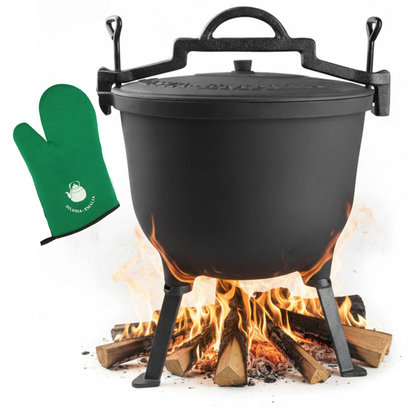 Kociołek żeliwny emaliowany 10L garnek myśliwski węgierski RĘKAWICA