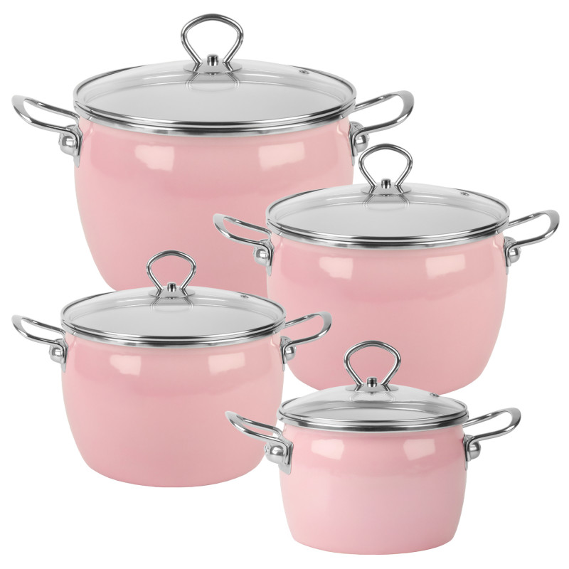 Komplet garnków emaliowanych MARYNA 2,3l / 3l / 4l / 5l różowy