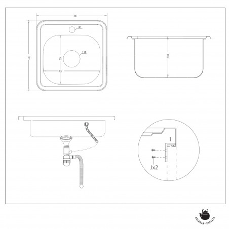 Zlew jednokomorowy LS-3838-BLACK o wymiarach 38x38x18 cm to praktyczne i eleganckie rozwiązanie do każdej kuchni. Wykonany został z wysokiej jakości stali nierdzewnej, co zapewnia trwałość i odporność na korozję. Dzięki czterem zaczepom montażowym zlew można łatwo i stabilnie zamontować.