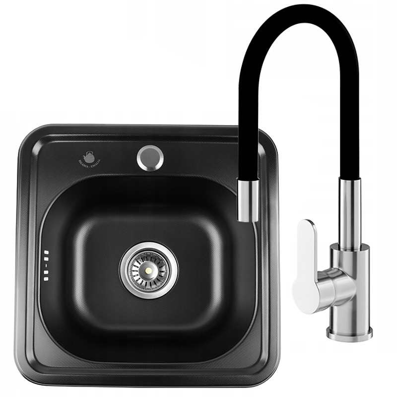 Zlewozmywak zlew stalowy z baterią kwadratowy 38x38x18cm SYFON WYLEWSKA CZARNY
