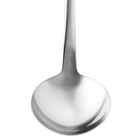 Wyprofilowana, głęboka miska ułatwia nabieranie i nalewanie płynnych potraw, zapewniając wygodę oraz bezpieczeństwo użytkowania. Stal nierdzewna gwarantuje trwałość, odporność na korozję i łatwość w utrzymaniu czystości.