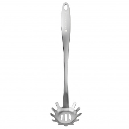 Specjalnie wyprofilowana główka z ząbkami ułatwia nabieranie i serwowanie spaghetti, linguine czy tagliatelle, a otwory w łyżce umożliwiają szybkie odsączenie wody, co sprawia, że makaron trafia na talerz suchy i idealnie podany.