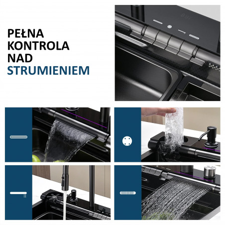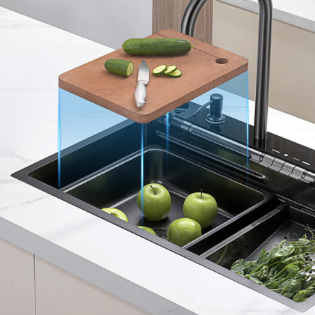 Zlewozmywak zlew stalowy wielofunkcyjny 75x45 cm deszczownica ociekacz wodospad czarny