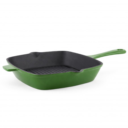 Komplet składa się z żeliwnej patelni o średnicy 26 cm oraz żeliwnego rondla o pojemności 1,5L z pokrywką. Naczynia wykonane są z wysokiej jakości żeliwa, które doskonale akumuluje i równomiernie rozprowadza ciepło. Emaliowana powłoka w kolorze zielonym nadaje zestawowi wyjątkowy wygląd oraz ułatwia utrzymanie w czystości. Zestaw jest przystosowany do użytkowania na kuchenkach indukcyjnych i gazowych, a także sprawdzi się na innych typach płyt grzewczych.