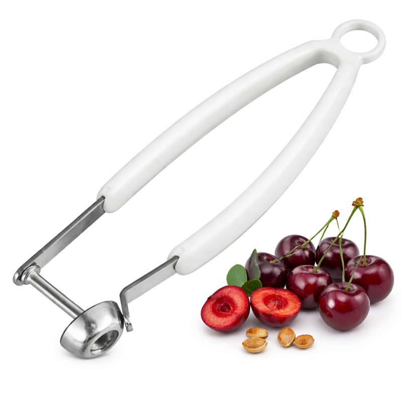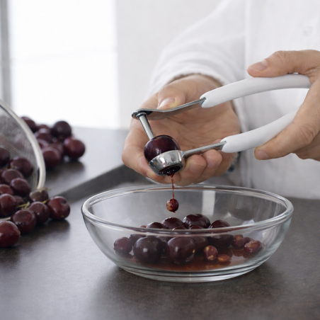 - Ergonomiczny kształt - lekka forma oraz wygodny uchwyt sprawiają, że drylownica dobrze leży w dłoni i zapewnia komfort użytkowania nawet przy większej ilości owoców.