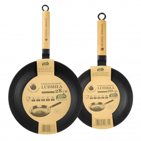 Zestaw patelni żeliwnych z drewnianą rączką LUDMIŁA 20cm + 28 cm