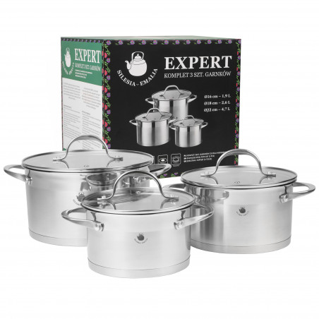 Komplet garnków stalowych EXPERT 6 elementowy INDUKCJA GAZ