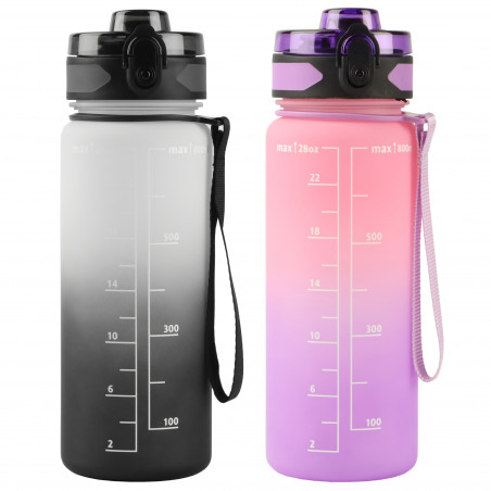 Zestaw butelka bidon na wodę napój TRITANOWA 800ML szczelna SPORTOWA Z PODZIAŁKĄ DLA DWOJGA