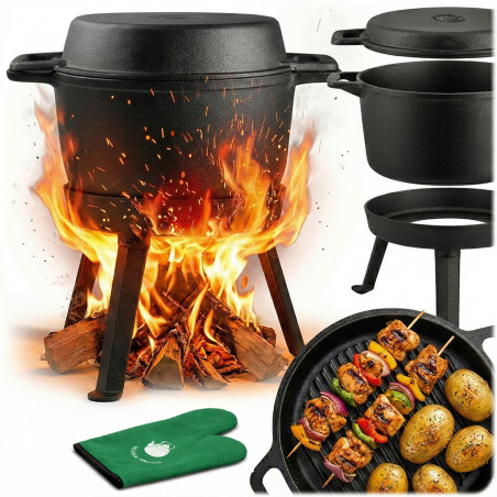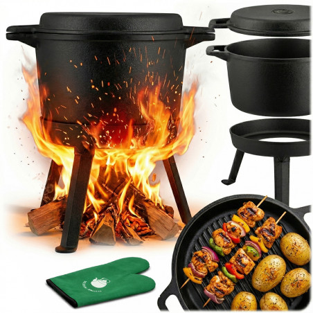 Kociołek żeliwny garnek patelnia 3w1 myśliwski 10L